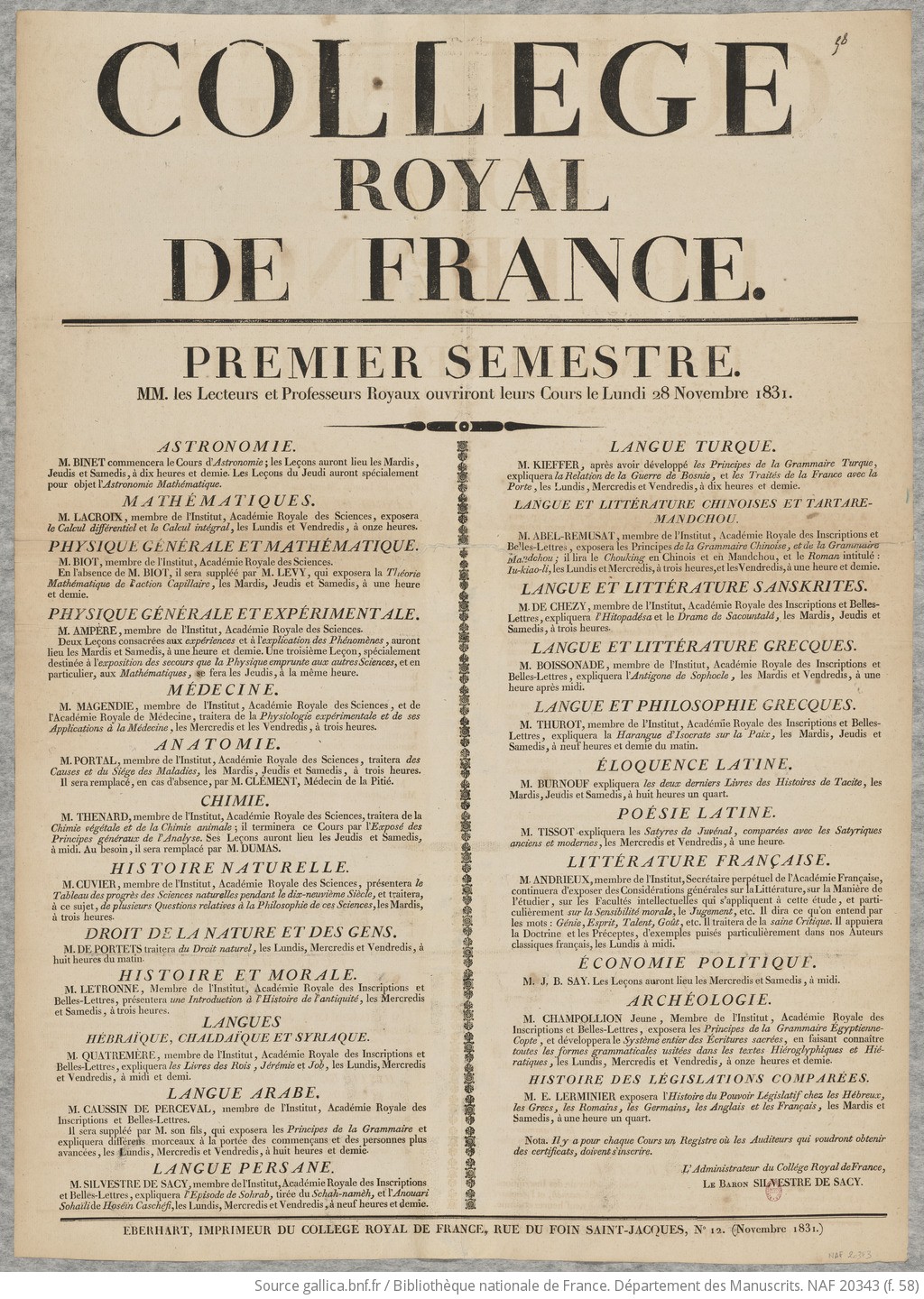 – Julien Auber de Lapierre, chargé d’expositions à la Direction des Bibliothèques, Archives et Collections du Collège de France.